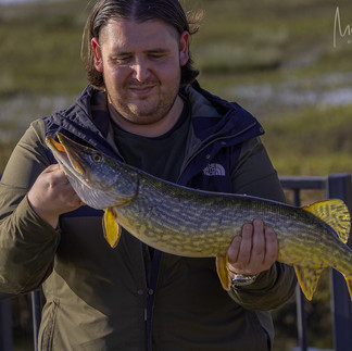 Na de lunch pakken we de auto. We stoppen even bij een visser die beet heeft wanneer wij hem voorbij rijden. Hij vangt in ons bijzijn een flinke snoek. Met toestemming maak ik foto's van hem. Ik geef hem mijn visite kaartje met het verzoek mij een berichtje te sturen wanneer hij het leuk vindt om de foto te hebben, wat dezelfde avond nog gebeurd. Tijdens ons tochtje met de auto fotografeer ik verder alleen nog een grote zilverreiger. Eigenlijk hopen we nog een zeearend of kiekendief te spotten maar helaas. Met het weer van vandaag hadden we blijkbaar al genoeg bof aan onze kont hangen.