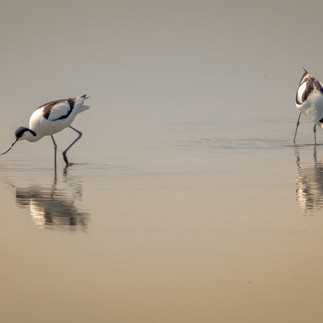 Bij de auto laten we Bolt in de schaduw even afkoelen met wat gekoeld water. Zelf eten en drinken we ook wat. Dan pakken we de auto en rijden dwars door de mooie Biesbosch richting de eerste tip die ik kreeg. We lopen er naar een vogelkijkhut. Onderweg veel sporen van bevers. We horen vooral enorm veel nachtegalen en cetti's zangers, maar ze laten zich niet zien. Pas bij de derde tip worden we echt verrast. Wat verderop blijken 3 zeearenden te zien te zijn. We lopen snel richting de plek waar we in de verte twee andere fotografen zien staan. Voor we daar maar in de buurt komen, ontdekken we de drie zeearenden zelf al. Ze zitten behoorlijk ver weg, maar met de verrekijker kunnen we ze toch goed zien. Het drietal lijkt zich te goed te doen aan enorm dikke karpers die zijn vast gelopen in de modder bij laag water. Wat een profiteurs! Ondanks dat het wat ver weg is, probeer ik wat foto's te maken. Net wanneer ik flink wat foto's aan het nemen ben, vliegt de meest linkse arend op, gevolgd door de twee anderen. Achter elkaar aan vliegen ze weg. Iedereen hoopt dat ze terug keren, maar langzaam verdwijnen ze uit het zicht. Na dit avontuur zijn we wel toe aan een bak koffie en een lekker stuk appelgebak. Een goede reden om richting Werkendam te rijden. Onderweg zie ik in laag water een groepje kluten rondscharrelen naar eten. Even stoppen en uitstappen dus maar weer. Na wat kluten foto's hoor ik achter mij een paar rietzangers te keer gaan. Ik steek de weg over en zie er zowaar een bovenin een rietstengel zitten. Wanneer ik dichterbij kom en een foto wil maken, daalt hij al zingend af naar beneden, in het riet, onzichtbaar voor mij. 20 meter links van mij komt een ander exemplaar tevoorschijn en gaat ook bovenin een van de stengels zitten om te kijken wat er loos is. Langzaam naar links lopen dan maar. Helaas duikt ook deze naar beneden wanneer ik dichterbij kom. Mevrouw de rietzanger rechts van mij is dan weer dapper genoeg om naar boven te klimmen. Ik sluip ook maar weer naar rechts. En warempel, mevrouw duikt snel weer naar beneden. Zo houden 3 rietzangers mij een minuut of 10 bezig. Het lijkt wel een kat en muis spel. Vanuit de auto bekeken moet het een lachwekkend gezicht zijn. Uiteindelijk win ik het spelletje en ga ik toch tevreden naar huis met een paar goede foto's.