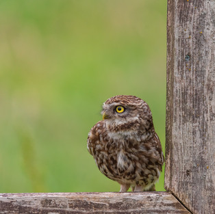 Nog geen 5 minuten nadat ik mij heb geïnstalleerd, verschijnt er al een blauwborst ten tonele. Duidelijk is dat deze vogels op de meelwormen af komen die Glenn zojuist heeft verdeeld over de bakjes, die keurig uit het zicht hangen. Meteen na de blauwborst komt de eerste steenuil het toneel op. Net zo dol op de meelwormen als de blauwborst. Wat zijn het toch een prachtige roofvogeltjes. De omgeving wordt voortdurend afgespeurd door zijn koppie alle kanten op te draaien. Gebiologeerd en onder de indruk sla ik de steenuilen gade. Wat een fantastische ogen. Ik maak foto's van de uil op ieder paaltje waar hij landt. Vanuit het tentje naast mij hoor ik een snel geklik, steeds wanneer de steenuil opvliegt. Meneer naast mij is duidelijk meer ervaren dan ik en maakt vliegbeelden.